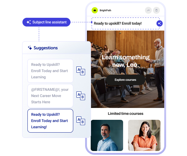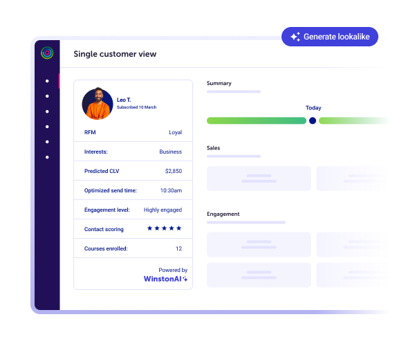 Identify opportunities and simplify the learner journey with the help of WinstonAI, Dotdigital’s marketing intelligence tools. Pinpoint key moments and actions to improve engagement with predictive analytics. And, use generative AI features like grammar and spell check and subject line writer to guarantee confidence in every send.